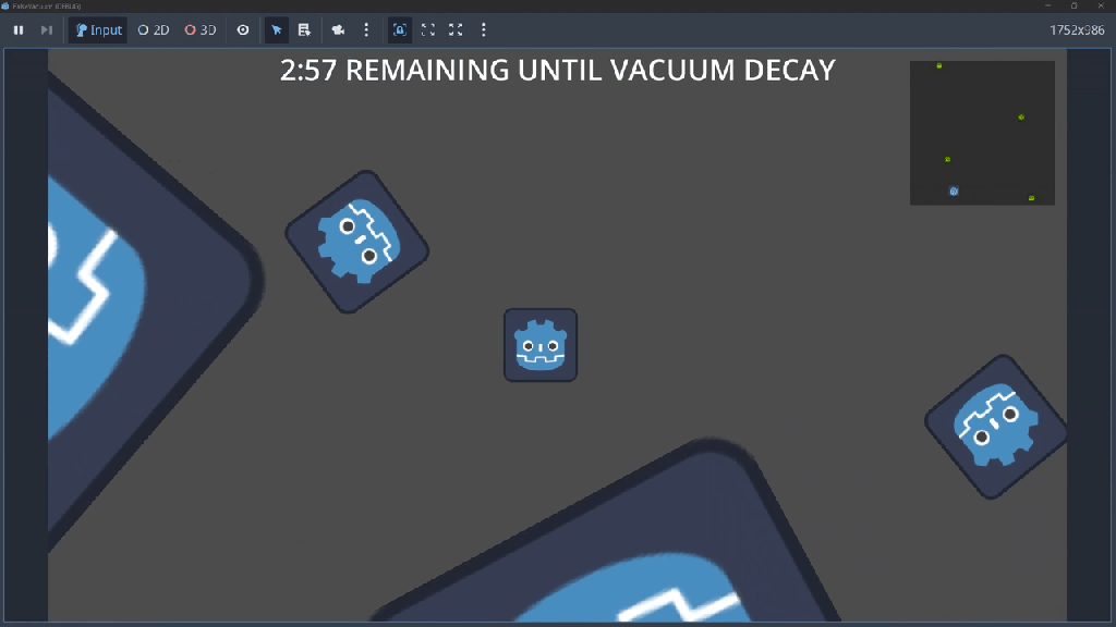 False Vacuum was my first game jam, so I didn’t know what I was expecting when going into it. Each team is given a week to make a game under the same theme, and this year’s theme was DELAY THE INEVITABLE.